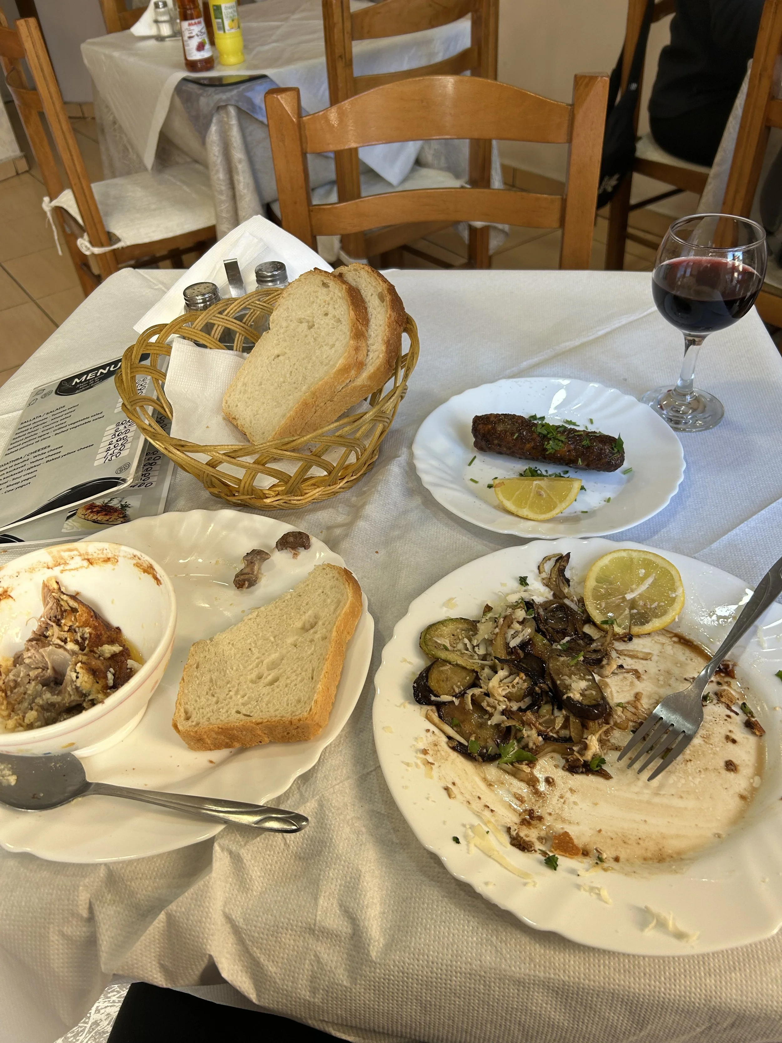 ワインを頼んで、ママにメニューを指さしながらハートマークを作ると、そしたら頭に電球ができたみたいに理解してくれた。そしてすすめてくれたのがTavë Kosi。アルバニアの国民料理で、ヨーグルトと卵を混ぜたソースをラム肉とご飯にかけて焼いたもの。ラム肉の匂いが強いかどうかがポイント。基本的にラムは好きだけど、クセが強すぎると苦手。でもママのおすすめだし、挑戦してみたいと思った。好き嫌いが分かれそうな料理は、自分の好きなお店で食べるのが一番。ワインもあるし、きっと大丈夫!と期待。