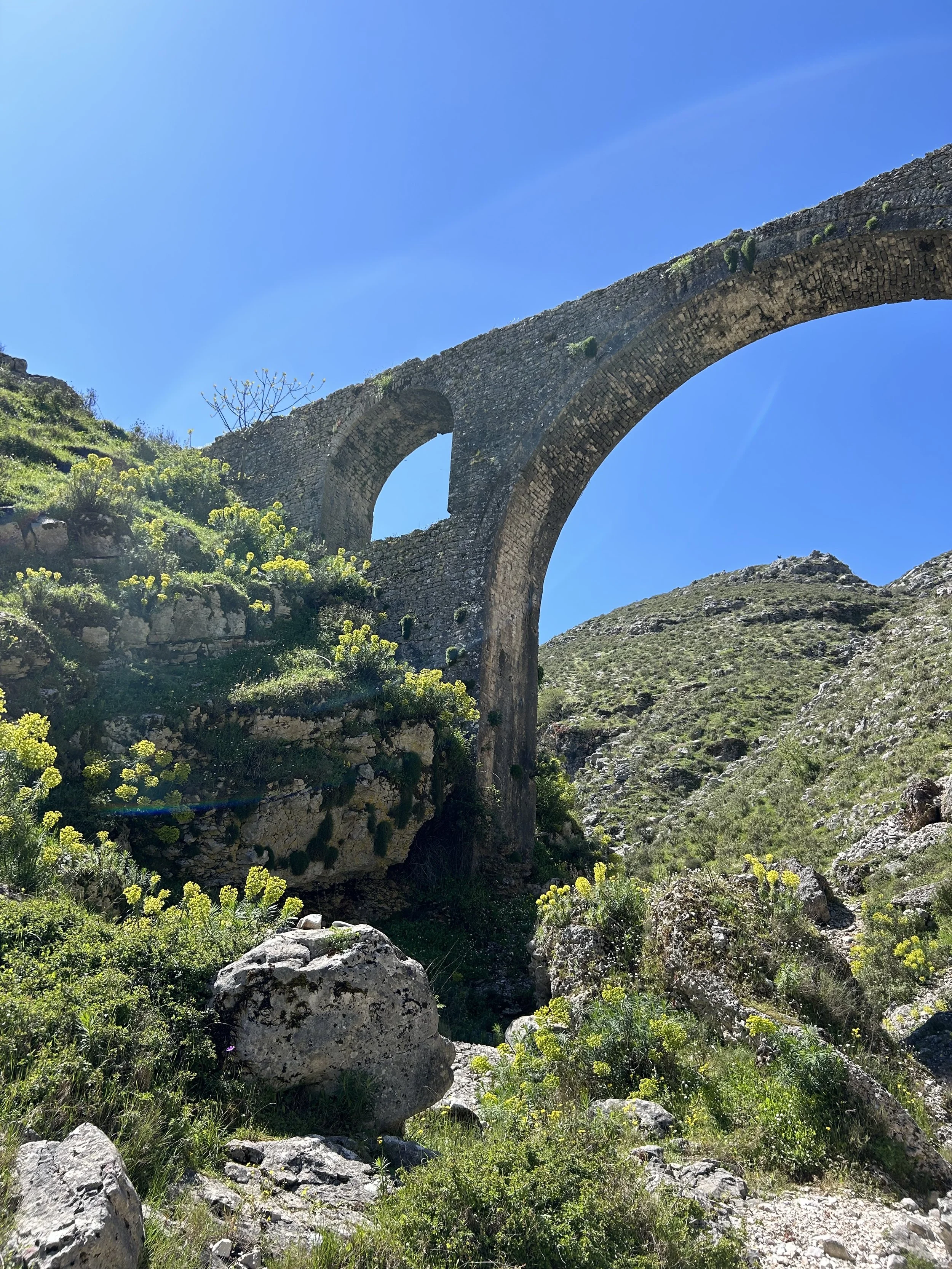 昨日はGjirokastër城に行ったから、今日は少し離れたAli Pasha Bridgeへ。山の中にある18世紀の水道橋跡で、Ali Pashaが築いた水供給システムの一部だったらしい。徒歩30分くらいだからちょうどいい散歩、と思った。