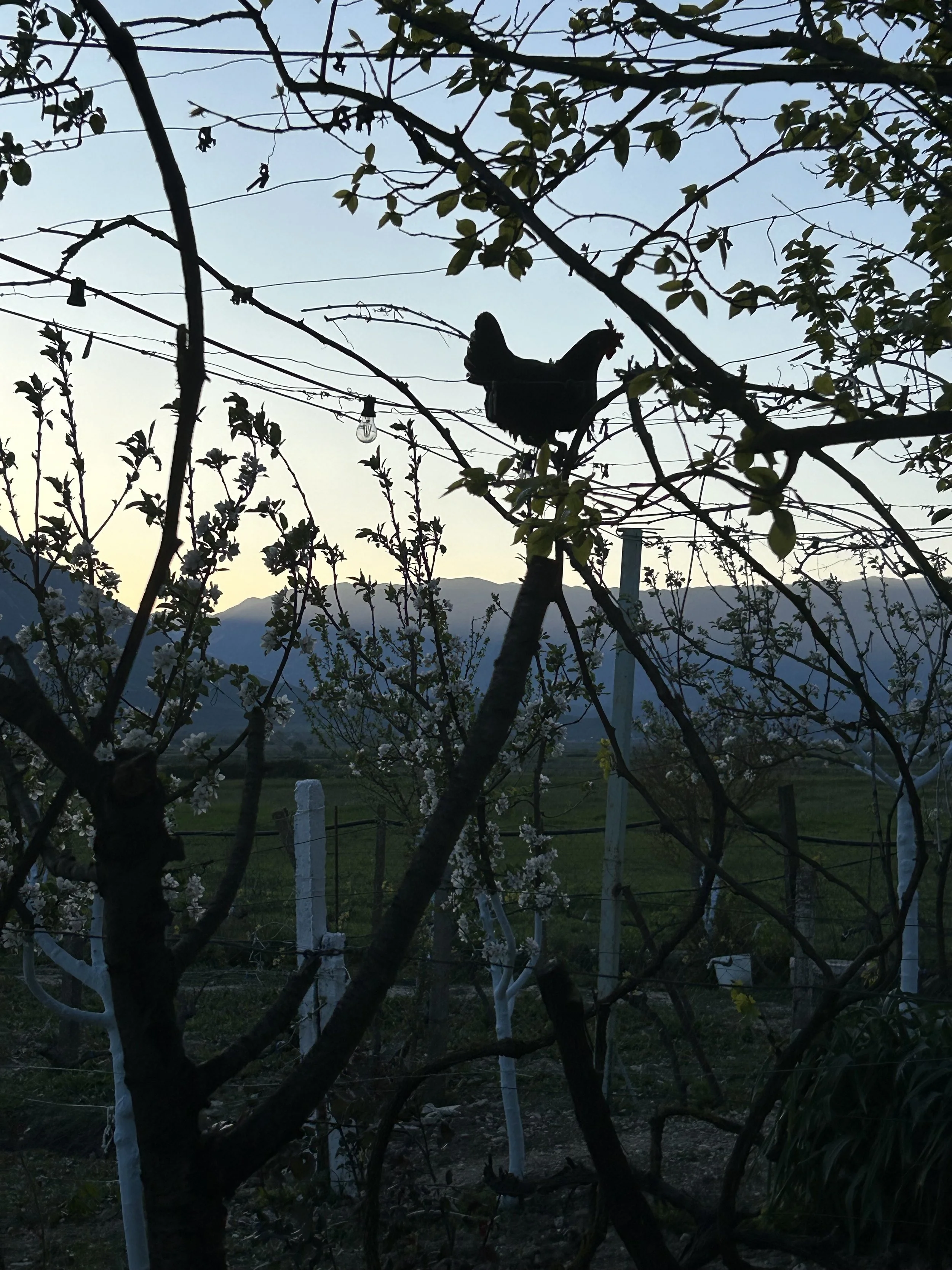 外は寒いけど、歩いてまだ体が熱っていたからちょうどよかった。ふと見ると、鶏が木に飛び乗って止まっていた。鶏が木の上にいるのを初めて見て、必死に写真を撮っていたら、Adaは不思議そうに見ていた。旅の醍醐味はここでも私の中で普通をくつがえししてくれる。